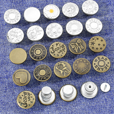 Neues Design 17mm Metall Zink legierung Denim Jeans Knopf Handpresse Beweglicher Kopf mit Beschichtung stech nik New Style Shank