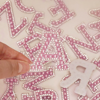 Новый дизайн в наличии слова Алфавит железо на буквах Розовый 3D жемчужные буквы патчи с декоративными стразами
